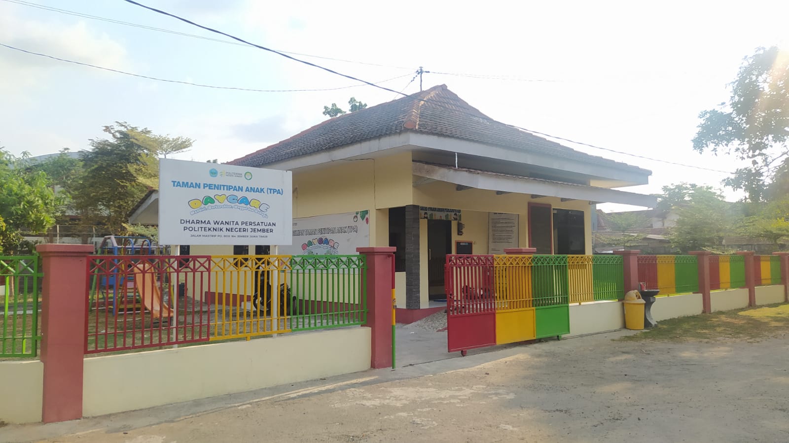 Taman Penitipan Anak Daycare DWP Polije adalah tempat yang hangat dan penuh kasih sayang bagi anak-anak. Kami berkomitmen memberikan perawatan dan pengasuhan terbaik, memastikan mereka tumbuh dengan bahagia, sehat, dan berprestasi. Dengan lingkungan yang aman dan mendukung, kami membantu anak-anak mengembangkan potensi mereka untuk masa depan yang cerah, sehingga orang tua dapat merasa tenang dan percaya bahwa anak-anak berada dalam asuhan yang tepat.